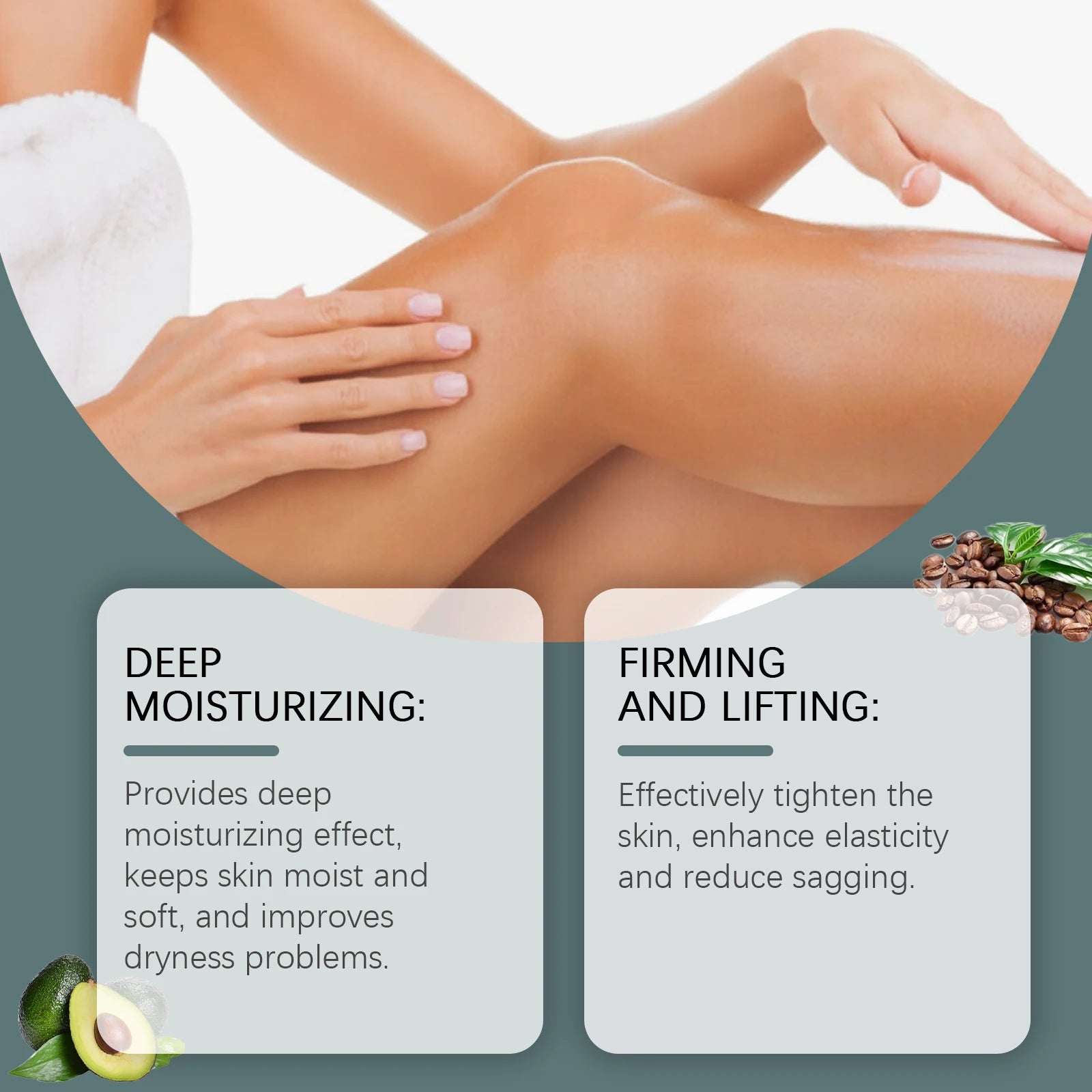 ●Function:Body nourishing body, lifting body, firming stomach, firming thigh, anti cellulite, prevent sagging, deeply moisturize body, skin tightening, softening smoothing, firm body lines